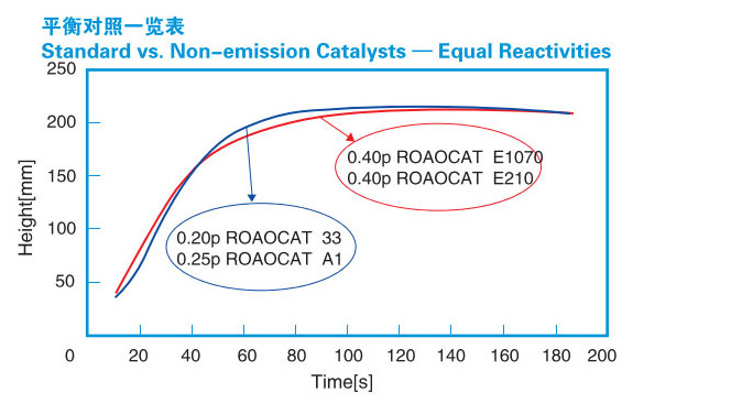 ROAOCAT E1070 催化劑應用于在水發(fā)泡 TDI 或 TDI/MDI 高回彈 HR 泡沫,以及在 TDI/MDI 或 MDI 為基礎的汽固化聚氨酯模塑中。于其他常用的聚氨酯催化劑和添加劑是兼容的,并很容易相混溶解,在 MDI體系中,建議使用 ROAOCAT E1070 催化劑在0.50-1.5pphp,在 TDI 系統(tǒng)建議使用量為 0.4-0.7pphp。